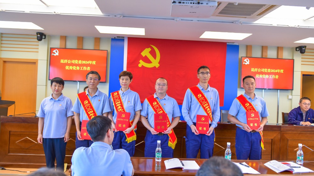 會(huì)上,公司黨委委員趙從濤宣讀了《昆纖公司黨委2024年度表彰決定》,決定對(duì)楊上功、張其蘋等為代表的5名優(yōu)秀黨務(wù)工作者,對(duì)謝俊馳、盛湸為代表的8名優(yōu)秀共產(chǎn)黨員進(jìn)行表彰。在熱烈的掌聲中,全體委員為獲得2024年度公司先進(jìn)黨支部、優(yōu)秀黨務(wù)工作者、優(yōu)秀黨員的支部代表和黨員進(jìn)行頒獎(jiǎng),并表示祝賀。先進(jìn)黨支部、優(yōu)秀共產(chǎn)黨員代表發(fā)言。全體黨員重溫了入黨誓詞。